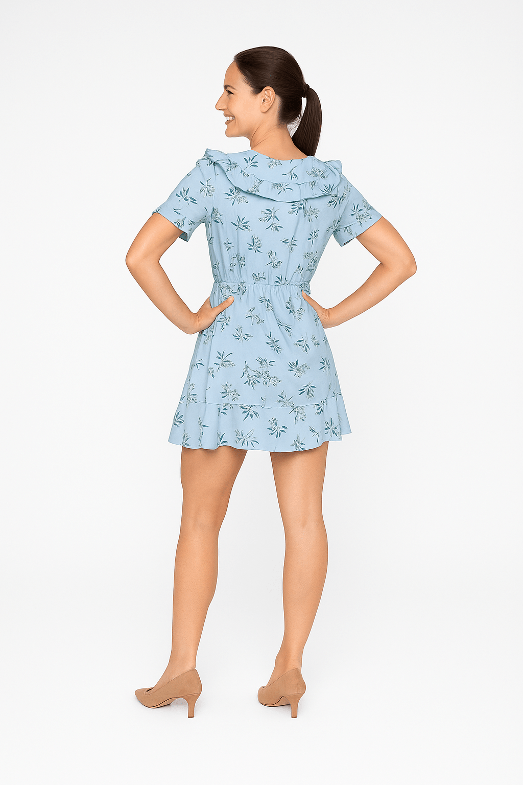 🌸 VILA Minikleid mit Blumenmuster – Hellblau, Rüschenärmel (Größe 36) 🌸