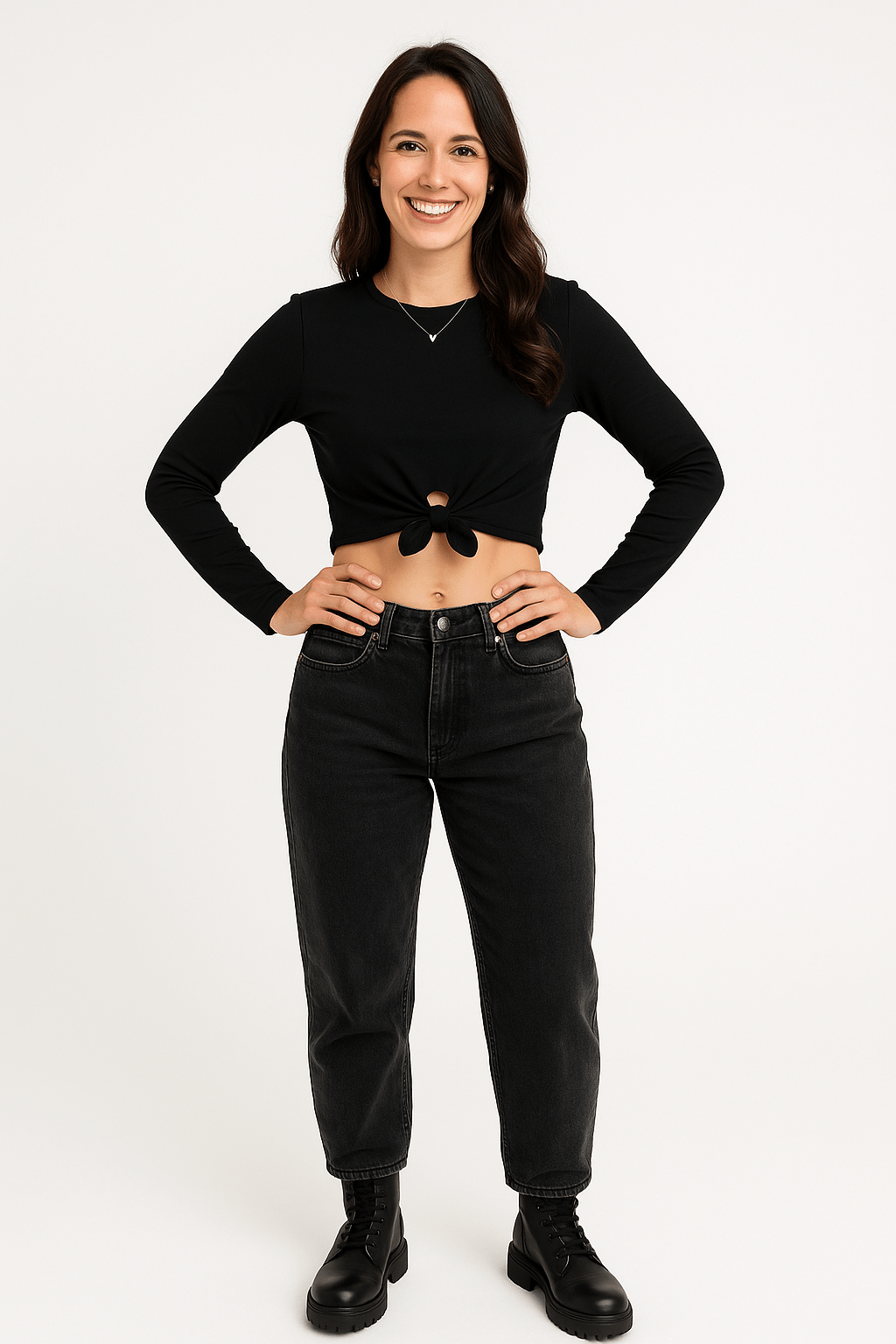 Sale% Dieser stilvolle schwarze mit langen Ärmeln und trendigem Knoten-Detail vorne kombiniert Komfort und Eleganz. Gefertigt aus 100 % biologischer...